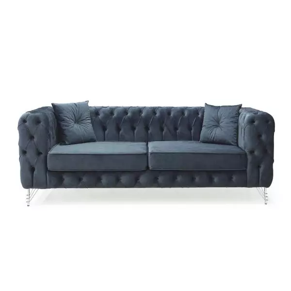 Crafted from premium plush velvet, the Chicago Chesterfield Sofa exudes opulence and sophistication. The velvet fabric is not only soft to the touch but also durable and easy to maintain, making it ideal for everyday use. The rich colors availableāBlue, Grey, and Blackāoffer versatility, allowing the sofa to seamlessly blend with a variety of interior styles, from classic to contemporary.